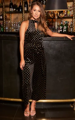 This elegant jumpsuit is the perfect for an evening occasion. Designed with a fitted waistline for a flattering silhouette, can be styled with heeled shoes and a statement clutch for an on-trend look.