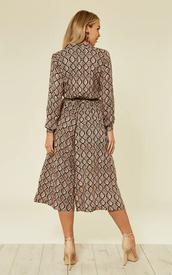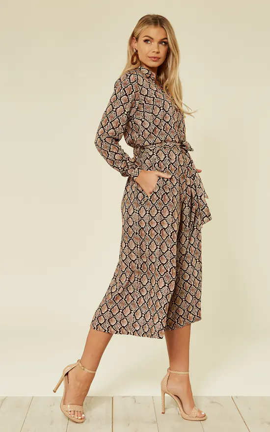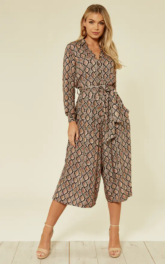 Product Code: RR1096 CULOTTE SHIRT JUMPSUIT SNAKE PRINT BROWN